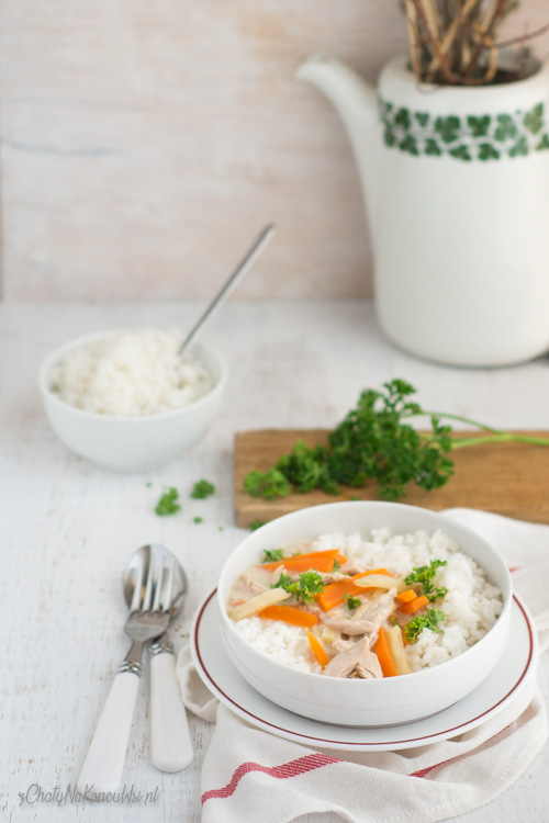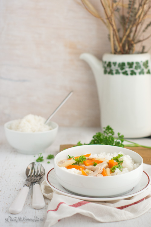 Potrawkę podaję z ryżem posypaną natką pietruszki.