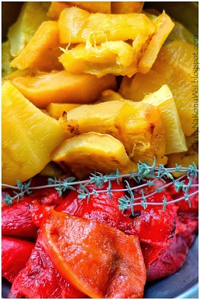 Kolejna wersja kremu dyniowego tym razem uzupełniony o słodką i ostrą paprykę, przepis zaczerpnięty z Kwestia Smaku. Połączenie to bardzo dobrze się komponuje i rozgrzewa. Pomysł na zapiekanie dyni będzie u mnie wykorzystywany już zawsze! Przyznam, że nie lubiłam pracować z dynią ponieważ jej obróbka była dla mnie dość męcząca i kłopotliwa. Na szczęście jest sposób aby uniknąć mierzenia się z twardą skórą, wystarczy pokroić dynię na kawałki wydrążyć pestki i włożyć na godzinę do piekarnika. Po tym czasie wystarczy łyżką zeskrobać miękki miąższ a skórkę wyrzucić, drugim razem zrobiłam już tym właśnie sposobem …