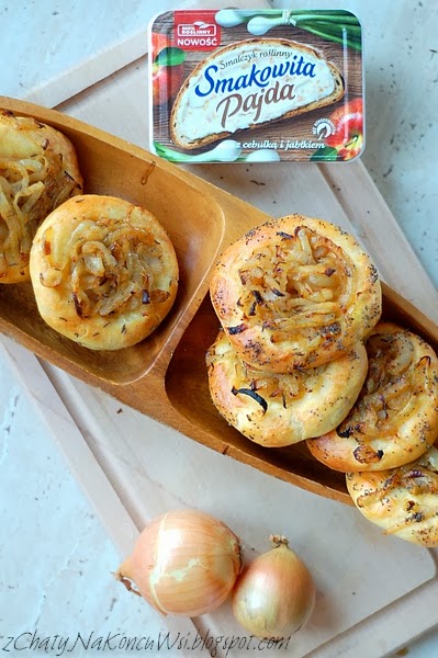 Pomysł na cebulaki miałam już dawno ale dopiero konkurs na wykorzystanie w kuchni smalczyku roślinnego zmobilizował mnie do opisania i sfotografowania tych pysznych wytrawnych bułeczek. Smakowita Pajda zaskoczyła mnie swoim smacznym zapachem który unosił się nad blatem już podczas wyrabiania ciasta i towarzyszy mi do tej chwili … kartka na której spisałam proporcje nadal nim pachnie i prowokuje do sięgnięcia po kolejnego cebulaka 🙂