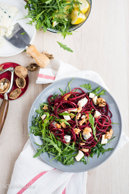 Sałatkę ze spaghetti z buraka zrobicie w 10 minut. I będzie to sycące, pełnowartościowe danie bez glutenu. Połączenie słodkiego buraka którego smak dodatkowo podkręca miód i cytryna z chrupiącymi orzechami, wyrazistą gorgonzolą i lekką ostrością rukoli to połączenie które kusi już samym opisem 🙂 A smakuje tak, że poprosicie o dokładkę !